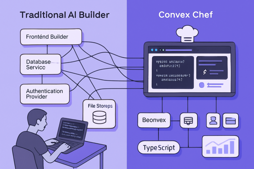 - ⚡ Traditional AI builders require 3-5 additional integration steps after code generation, while Convex Chef provides database, authentication, and real-time features out of the box